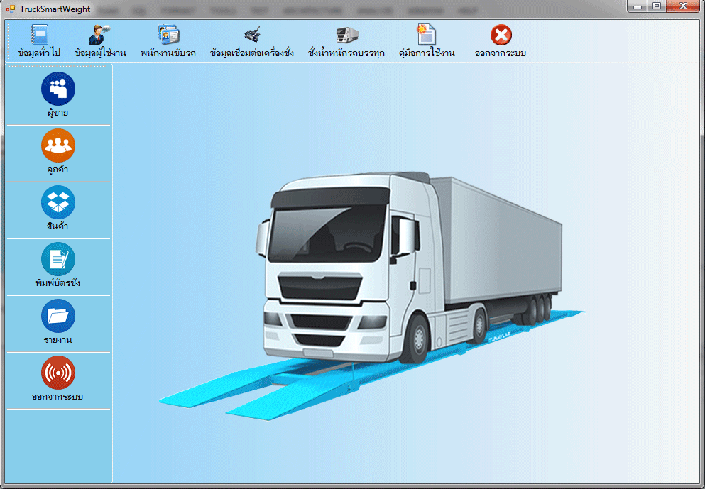 ระบบเครื่องชั่งน้ำหนักรถบรรทุก เป็นระบบซอฟท์แวร์ที่ทำหน้ารับค่าน้ำหนักจากเครื่องชั่งสำหรับรถบรรทุก โดยคุณสมบัติของโปรแกรมถูกต้องตรงตามข้อกำหนดของกรมการค้าภายใน ระบบสามารถบันทึกข้อมูลรายละเอียดการชั่งน้ำหนัก รูปถ่ายทะเบียนรถบรรทุก เข้า-ออก มีระบบสำรองข้อมูลอัตโนมัติ นอกจากระบบยังสามารถรองรับการทำงานร่วมกับระบบ RFID และระบบแลกบัตรผู้เข้ามาติดต่อได้